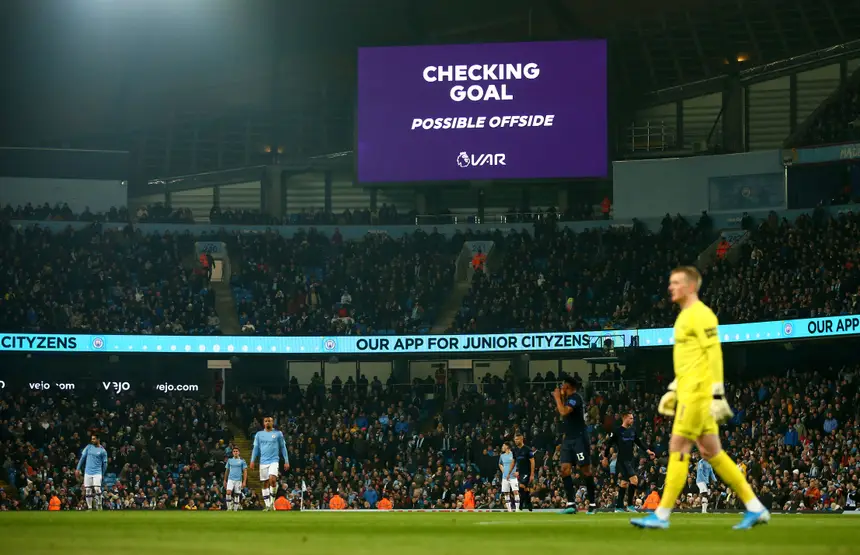 O fiscal de linha tem o braço no ar!
