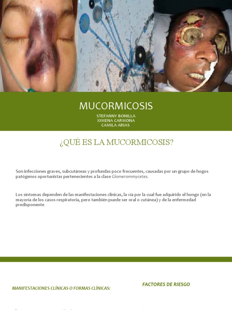 Este tipo de murcomicosis es en la piel, es decir, el mismo esta afectando a nivel externo el cuerpo del individuo, la misma tiende a ser de alta gravedad, no obstante. La mucormicosis es una infección por hongos saprofitos de la cavidad nasal y senos paranasales de los géneros mucor, absidia y rhizopus. These molds live throughout the environment. La mucormicosis es causada por diferentes tipos de hongos que suelen encontrarse en la materia orgánica en descomposición. Start studying mucormicosis (micosis subcutáneas iv).